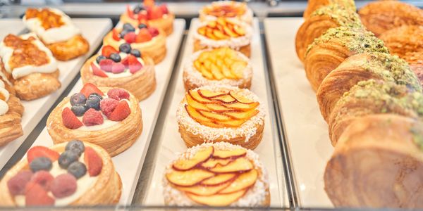 Flaky pastries filled with apple, quince, or custard.